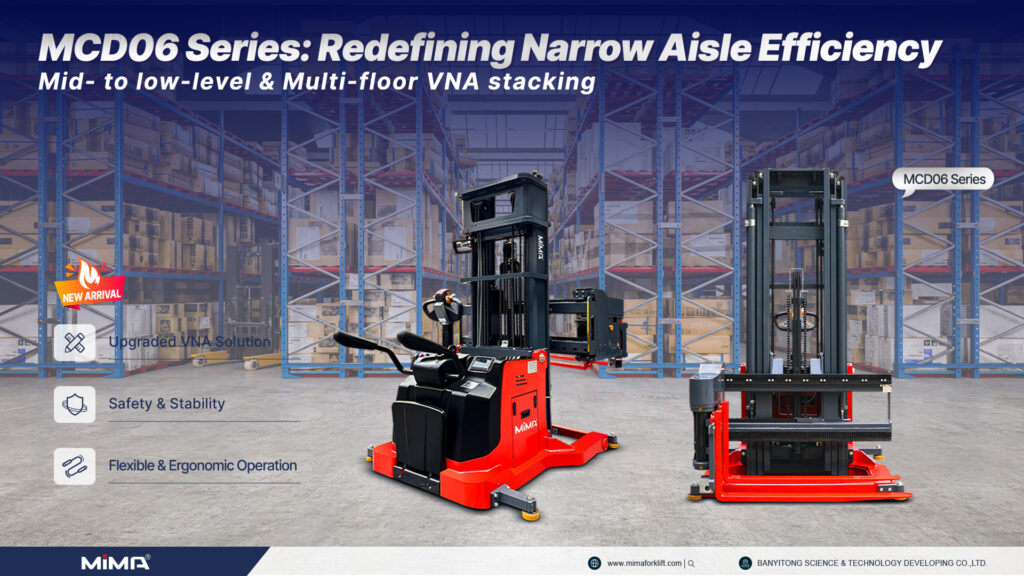 La serie SLIM de carretillas elevadoras AGV de Mima está diseñada para aplicaciones de pasillo estrecho, ofreciendo una maniobrabilidad y eficiencia excepcionales. Las características clave incluyen: